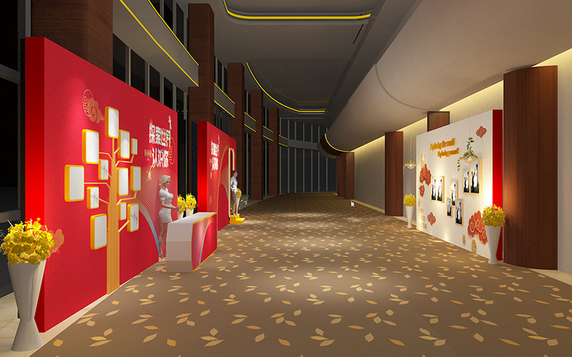 确定现场整体的“装修图”,及现场物料怎么摆放,统一设计风格及必要元素(如LOGO、年会主题)。
